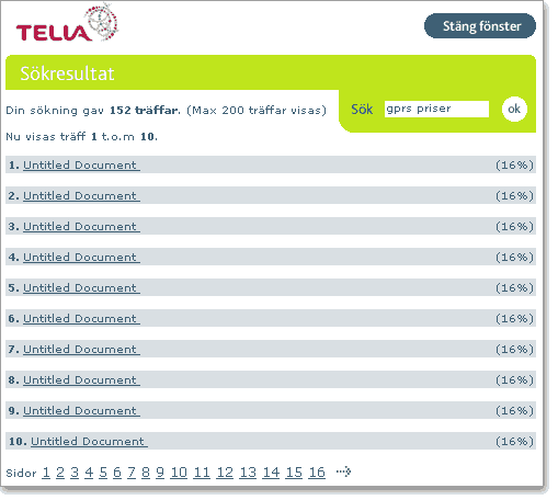 Se upp med publiceringssystemen ![]() Om man på teliamobile.se söker på "gprs priser" får man de resultat som syns till höger Teliamobile.se är inte uppbyggd i frames. De har istället ett publiceringssystem som fogar samman innehålls-delar med generella delar som sidhuvuden och sidfötter till enstaka sidor. Och i den processen får den sammansatta sidan ingen riktig titel. (Jag kan se i koden att Teliamobile delvis har försökt undvika problemet med en workaround som det skulle föra för långt att gå in på här - men den har som synes inte heller lyckats.) Ibland försöker jag föreställa mig en motsvarighet till sådan här undermålig service i verkligheten, i en vanlig butik i stället. Jag vet uppriktigt sagt inte riktigt vad det skulle vara. Expediter som näbbigt svarar "vet inte" på varenda fråga man ställer? En affär med helt omärkta, blanka förpackningar på alla hyllor? I alla fall vet jag att det inte på något sätt skulle accepteras. |